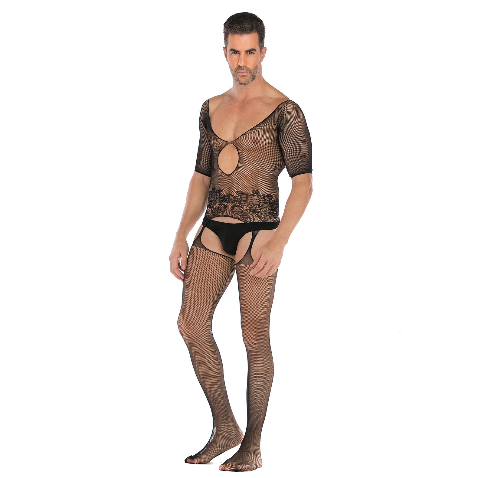 Half-Sleeve Mesh Bodystocking with Feet