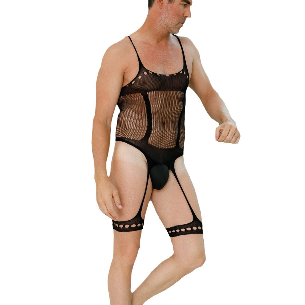 Hollow Geometric Cutout Mesh Bodysuit