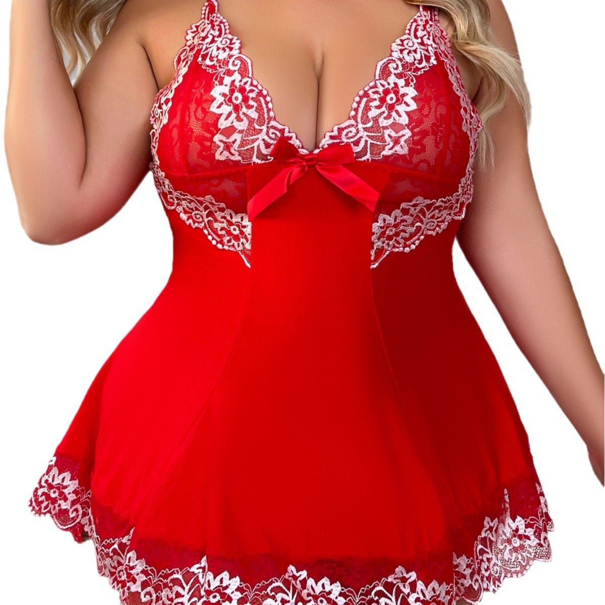 Plus Size Floral Lace Babydoll with Contrast Bow